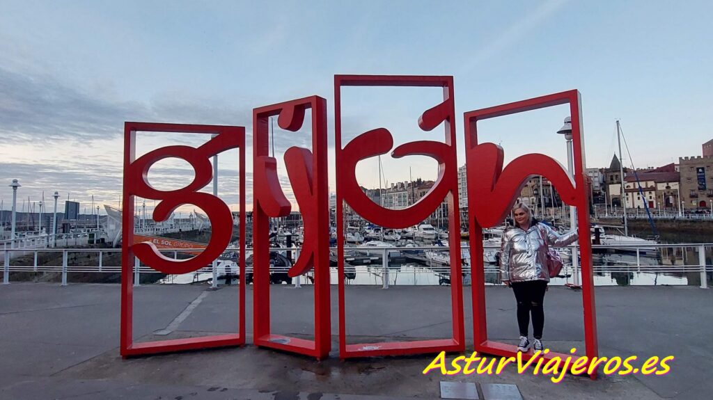 Y justo aquí encontrarás uno de los símbolos más populares de Gijón: las letronas rojas con el nombre de la ciudad, que forman la palabra “GIJÓN”.