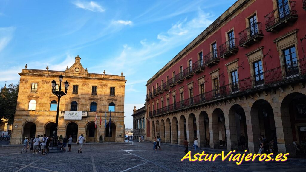 Situada entre el barrio marinero de Cimadevilla y el paseo de la playa de San Lorenzo, esta plaza representa el corazón histórico y administrativo de Gijón.
